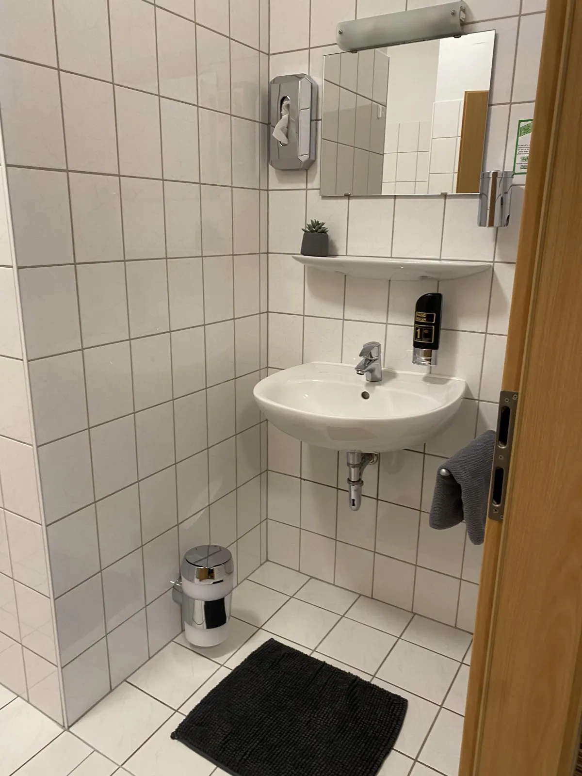 Eine Kaffee- und Teestation steht dir im Zimmer jederzeit zur Verfügung, ebenso eine Flasche Wasser zur Begrüßung. Jedes Zimmer verfügt über ein eigenes Bad mit Dusche und WC. Dort findest du hochwertige Pflegeprodukte, einen fest installierten Föhn, Handtücher und Badvorleger – selbstverständlich inklusive während deines gesamten Aufenthalts.