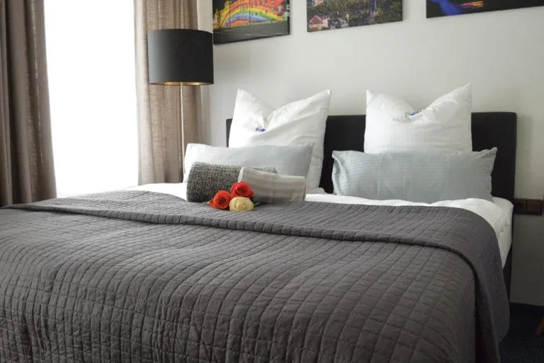 Alle unsere Zimmer sind mindestens 20 m² groß und bieten dir viel Platz zum Wohlfühlen. Sie sind mit einem gemütlichen Doppelbett, Schrank, Schreibtisch, Flachbild-TV (mit SKY-Anschluss), WLAN sowie Verdunklungsvorhängen ausgestattet – für erholsame Nächte und entspanntes Arbeiten.